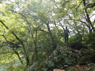 青梅市は沢井、多摩川沿いの遊歩道、澤乃井園のちょっと上流にある小高い岩の上に「青年の像」は立っている。