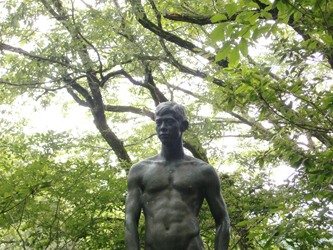 「青年の像」は銅製の、高さ2メートルほどの裸の青年男子の立像である。