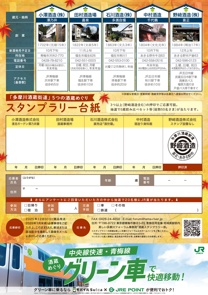 多摩川酒蔵街道スタンプラリー2025年9月1日~12月31日