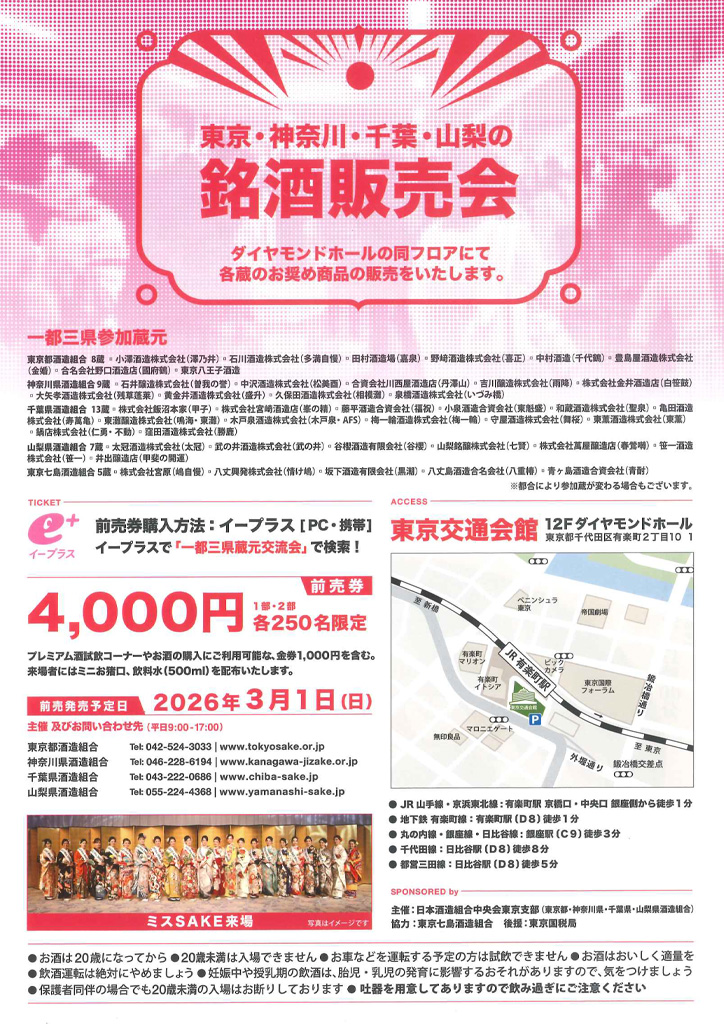 主 催:日本酒造組合中央会東京支部(東京都・神奈川県・千葉県・山梨県酒造組合)