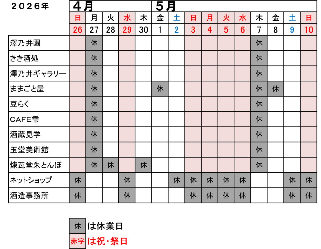 ゴールデンウィーク期間中は下記の通り営業いたします。